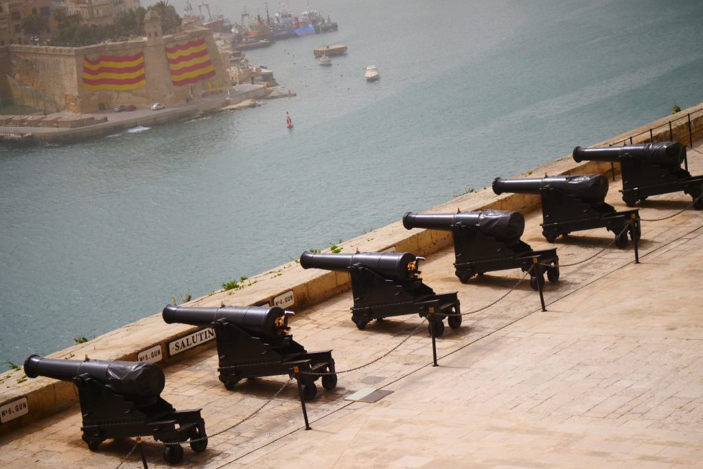 Der Bus ist voll, sehr voll – und er wird immer voller. Fahrgäste rufen nach vorne, man möge die Klimaanlage anschalten. Ich habe einen Sitzplatz. Von Bombi 1 gehe ich zum Fährhafen. Es gibt keine Gepäckaufbewahrung, aber ein Restaurant in der Nähe ist bereit mein Gepäck zu hüten, während ich noch einmal nach Valletta hineinfahre. Valletta ist voll. Stadtführerinnen recken Schirme nach oben. Menschen mit Stöpseln im Ohr gehen hinter ihnen her. Junge Frauen fotografieren sich über der Batterie mit den Kanonen. Lautsprecher machen auf das Angebot am Abfeuern der Kanonen teilzunehmen aufmerksam. Ein als englischer Polizist verkleideter Mann rennt durch die Menge. Er muss wohl eine Kostümführung leiten und ist spät dran. Pseudo-Kreuzritter bieten sich an fotografiert zu werden. Straßenmusiker, Souvenirläden, Touristen-Bähnchen.
